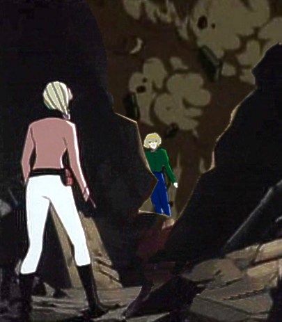 In the meantime, Big Ramses had transformed his left arm. "Shock vortex," reported Dorothy. Big O was too close, but Big Ramses fired at Big B. A ring of blinding silver light shot out of the end of his arm and raced to Big B, who was suddenly enveloped in silvery lightning that went on and on. Big B became suddenly rigid, then toppled onto his side.